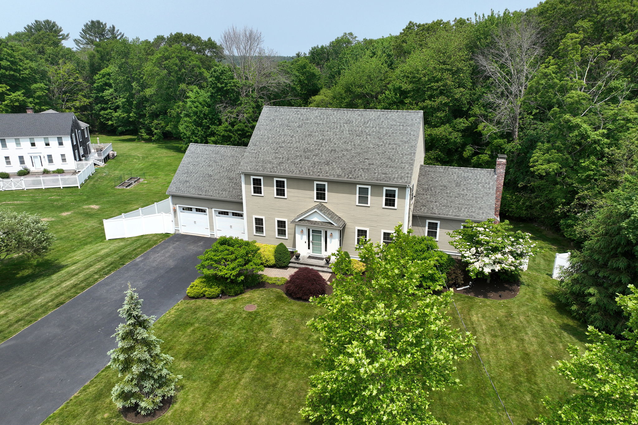 Spacious & bright, this stunning home offers modern style and exceptional comfort with an open-concept layout, soaring ceilings, and high-end upgrades throughout. The designer kitchen features subway tile, honed granite countertops, and an oversized island, flowing seamlessly into sunlit family room with cozy fireplace and access to a deck overlooking private backyard with fire-pit. The first floor also includes a formal dining room, living room, and powder room—perfect for everyday living and entertaining. Upstairs, you’ll find three generously sized bedrooms served by a large family bath plus a peaceful primary suite with roomy ensuite bath and walk-in closet. Expansive, fully finished walkout lower level is a game changer with additional space for living, playing and exercising plus a beverage bar, guest room or office, and a full bath. Great location bordered by conservation land but close to commuter rail. Move-in ready and truly turnkey!